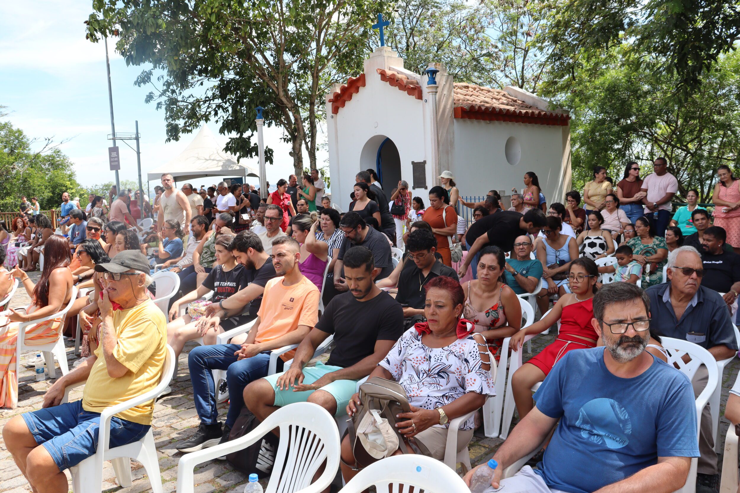 Paz e Bem. A tradicional Missa da Saúde, celebrada na tarde desta quarta-feira (28), no Campiho do Convento da Penha, reuniu numerosos fiéis aos pés do Santuário de Nossa Senhora